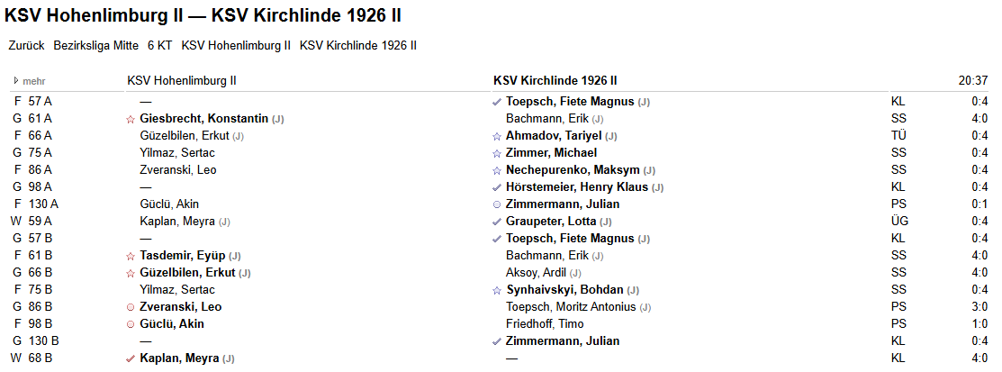Aufgrund zahlreicher Ausfälle auch in der 1. Mannschaft konnte unsere Reserve nur geschwächt gegen die 2. Mannschaft des KSV Kirchlinde antreten und unterlag am Ende deutlich. Die Hypothek von gleich fünf an der Waage abgegebenen Kämpfen wog hier einfach zu schwer.