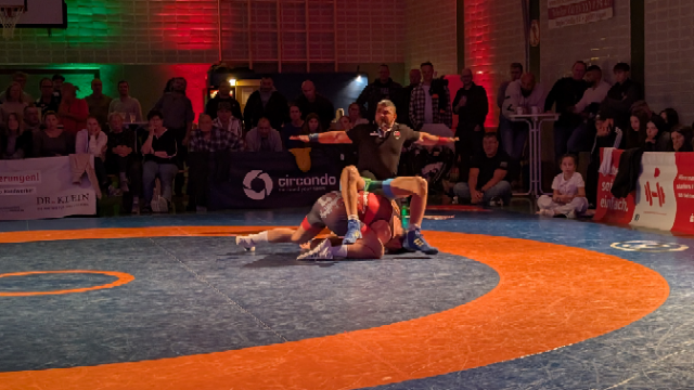 57 kg (F) Fabian Schlachta startete engagiert, wurde jedoch früh für eine Unaufmerksamkeit bestraft und geschultert – ein kurzer Dämpfer zum Auftakt.